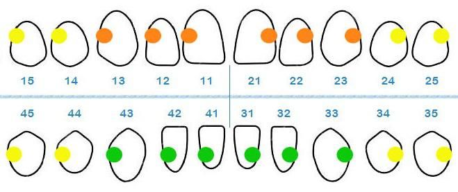 En plus d'apposer un marquage par dent, nous identifions également le torque (super, standard, low) avec un point de couleur supplémentaire.